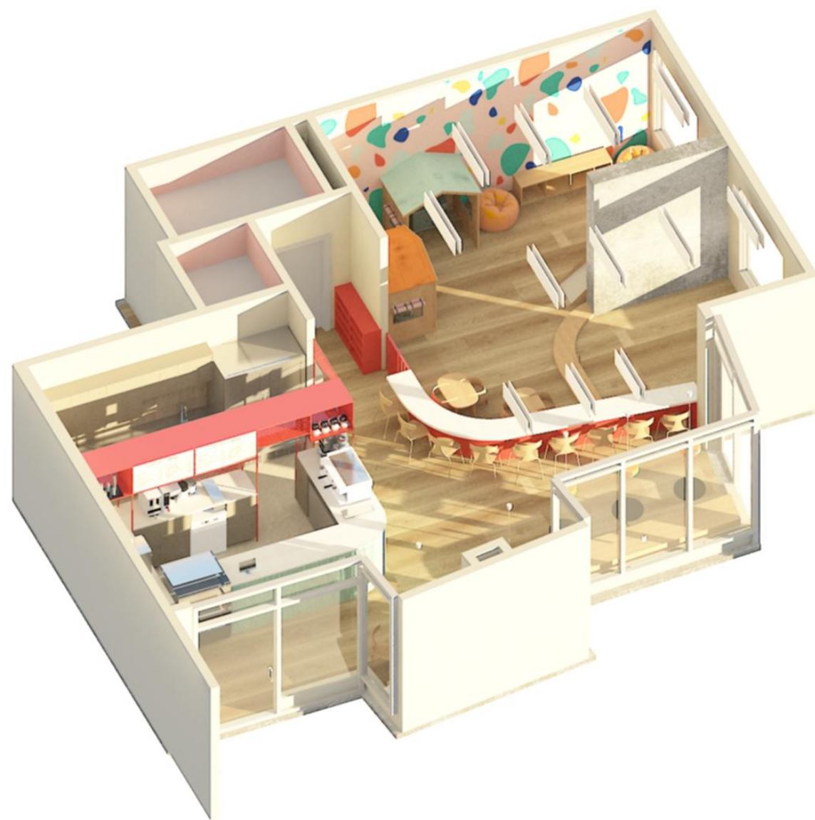 Learn about the concept behind the play cafe and how scribbles with friends lead to architectural plans